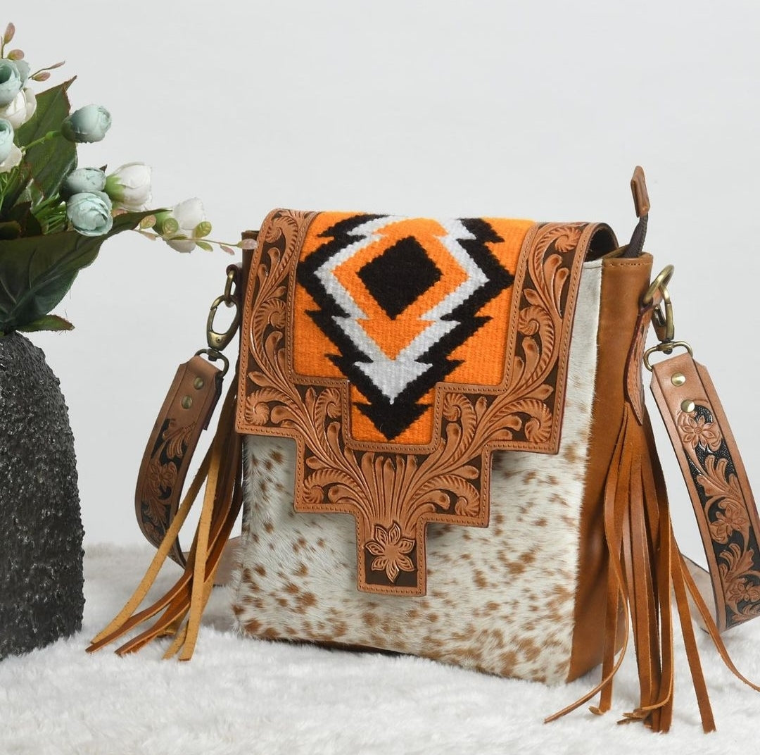 Aztec Pattern Leather Belt - Handcrafted Western Style with Decorative Detailing