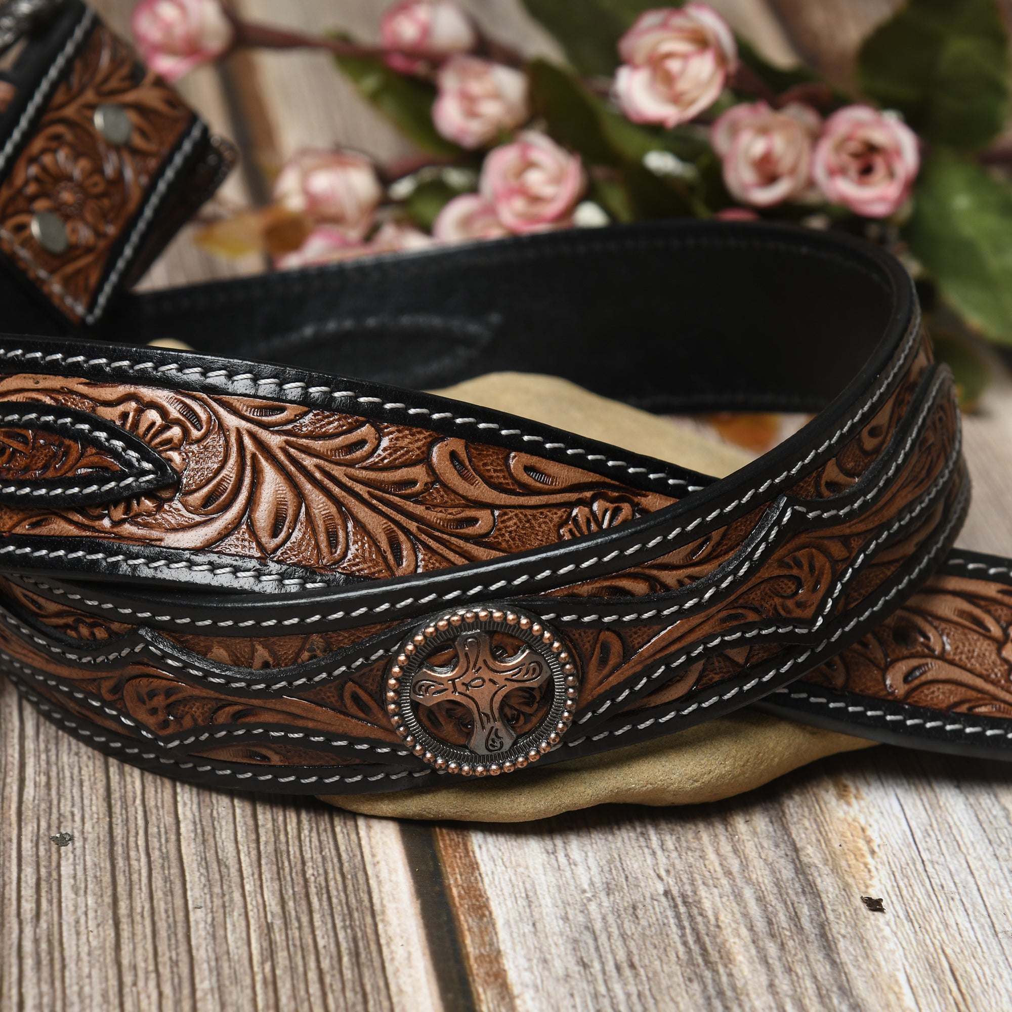 Premium Beaded Leather Belt - Handcrafted Western Style