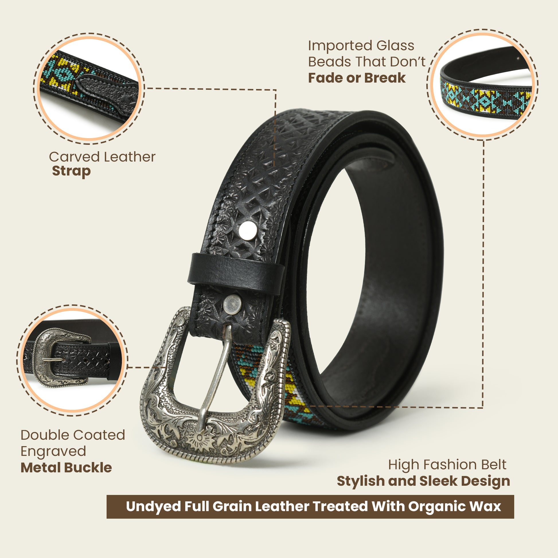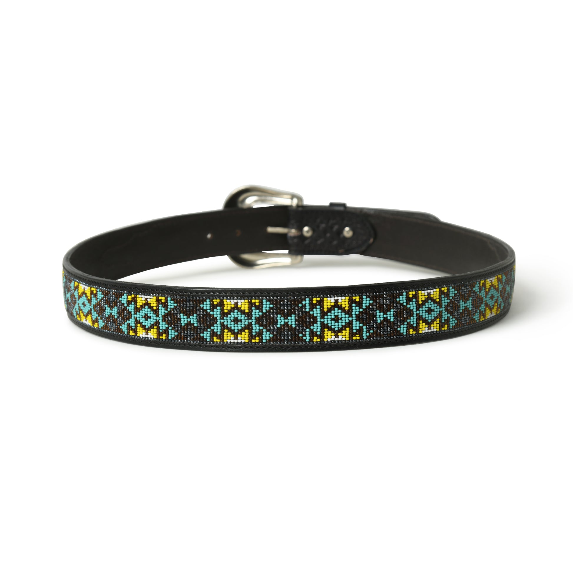 Beaded Leather Belt - Handcrafted Western Style with Decorative Beadwork